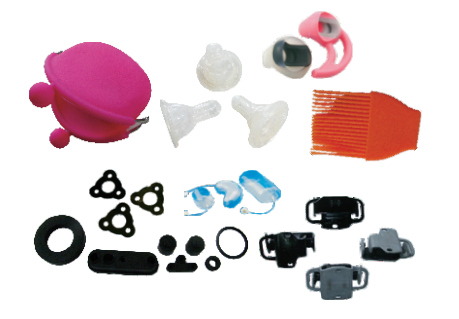 汽車配件、橡膠迫緊、醫用橡膠、O型環、硅膠按鍵、民用橡膠、瓶塞、工業橡膠、硅/橡膠類等多層模壓制品。